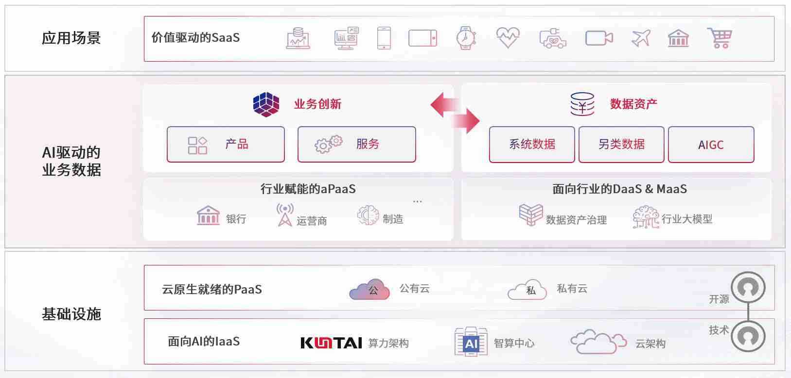 数字时代,,,,围绕企业数字化转型的关键要素,,j9国际站备用数码开创性的提出数云融合战略和技术体系框架,,,着力在云原生、、、数字原生、、AI原生和信创产业上架构产品和服务能力,,为处在不同数字化转型阶段的快消零售、、汽车、、金融、、、、医疗、、政企、、教育、、、运营商等行业客户提供泛在的敏捷IT能力和融合的数据驱动能力,,,,构建跨界融合创新的数字业务场景和新业务模式,,助力企业级客户建立面向未来的核心能力和竞争优势,,,,全面推动社会的数字化、、、、智能化转型升级。。。。