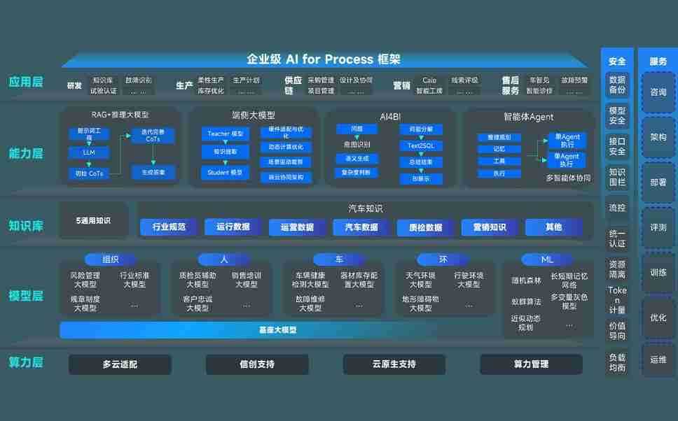 j9国际站备用问学智车解决方案是一套基于AI技术的汽车行业智能化系统,,覆盖从底层算力到顶层AI应用的全栈方案。。方案由算力层、、、模型层和应用层组成:算力层,,,,方案支持多种一体机配置,,,具备云端灵活部署、、多云适配以及动态优化计算资源的能力;模型层,,,,j9国际站备用问学平台版提供了企业级AI应用一站式构建与管理平台,,,,支持基于后训练强化技术的汽车企业专属模型的训练、、评测和运营;应用层,,,,j9国际站备用问学DeepSeek版提供包括超级员工、、、智能招采、、、、智能营销、、、、智能客服、、、、AI for BI等一系列解决方案,,可助力汽车行业实现数字化转型,,,,让管理更智能、、响应更敏捷。。